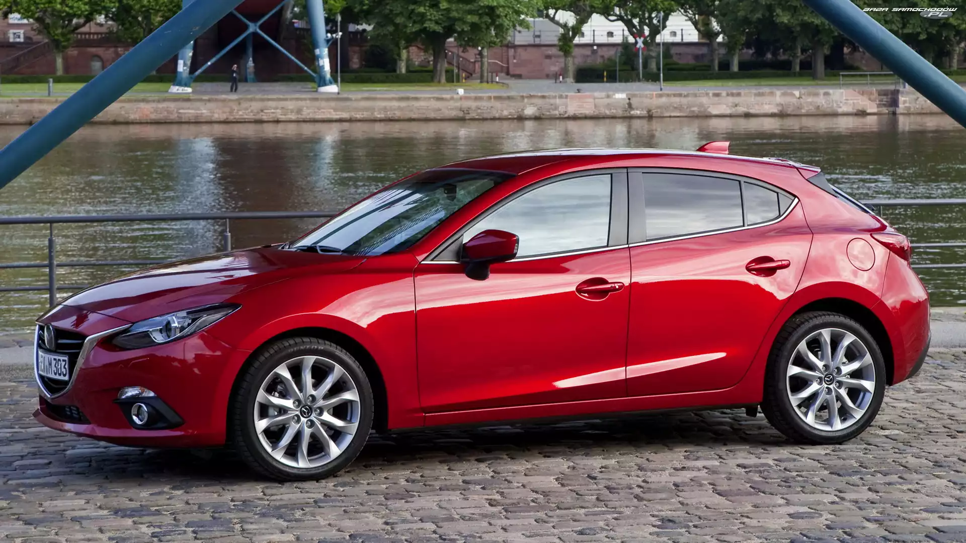 Mazda 3 Mazda 3 Dworek, Mazda 3 Mazda 3 Transformers, Mazda 3 Czwarta generacja, Mazda 3, IV Hatchback, Mazda 3 Mazda 3 Mazda 3 Hatchback, 2013 Mazda 3, Hatchback Niebieski, Metalik, Sport Line, Mazda 3 Reklama, Mazda 3 S, Mazda 3 Rzeka, Wieżowce, Zdjęcie, Mazda 3, Miasta