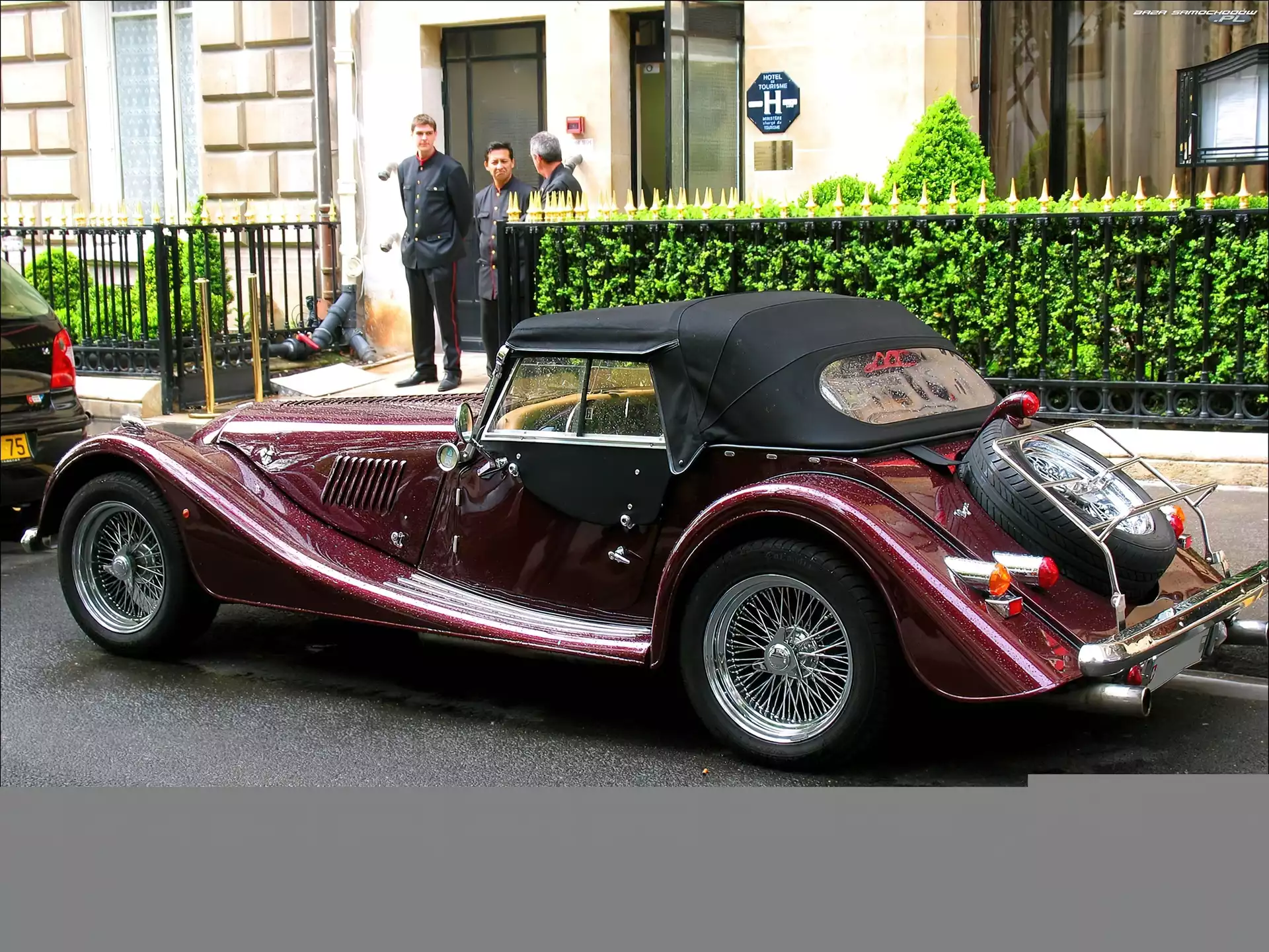 dach, opona, Samochody Zabytkowe, Morgan, światła- Zdjęcia samochodów